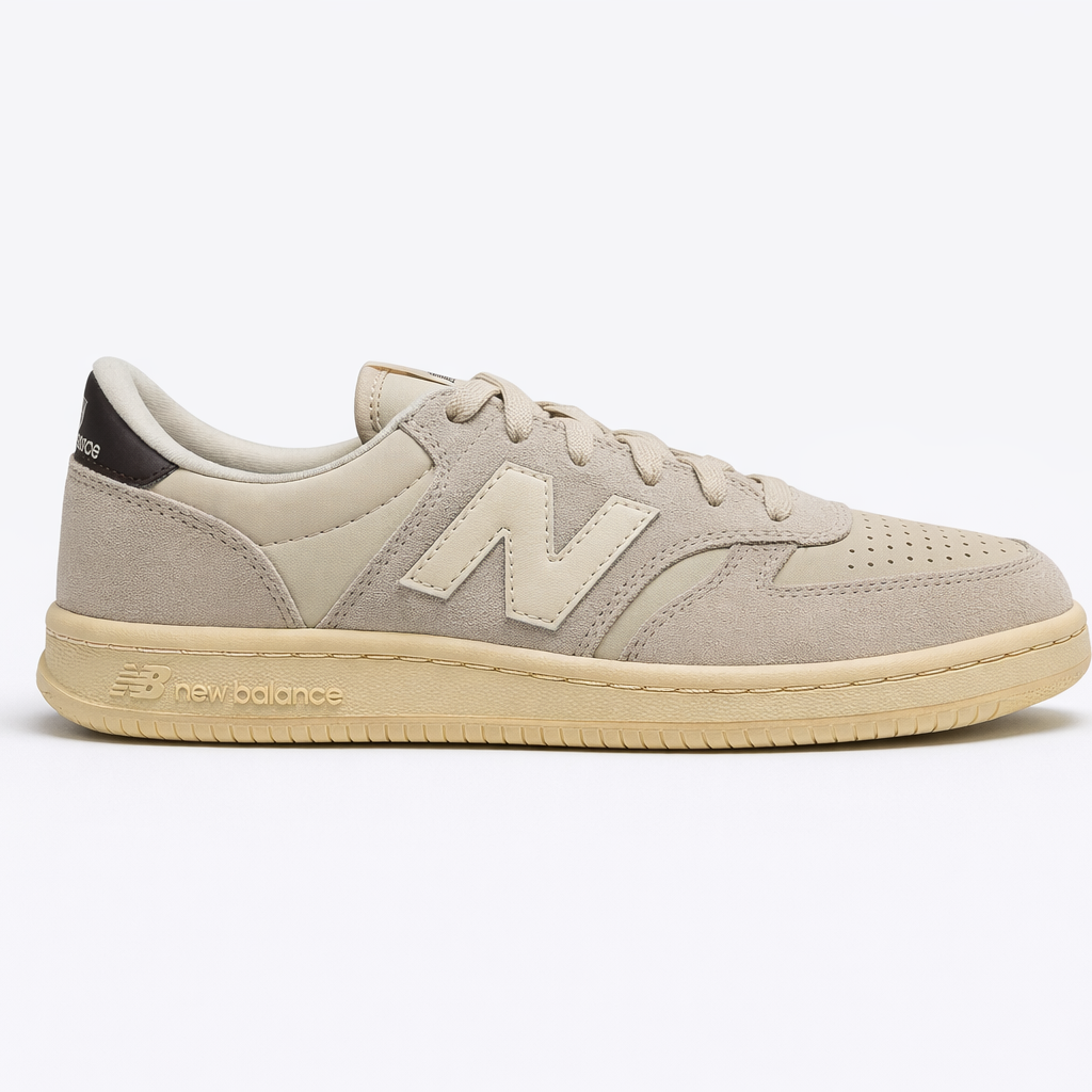 O New Balance CT500 traz uma leitura contemporânea do estilo clássico das quadras, com design minimalista e acabamento sofisticado.