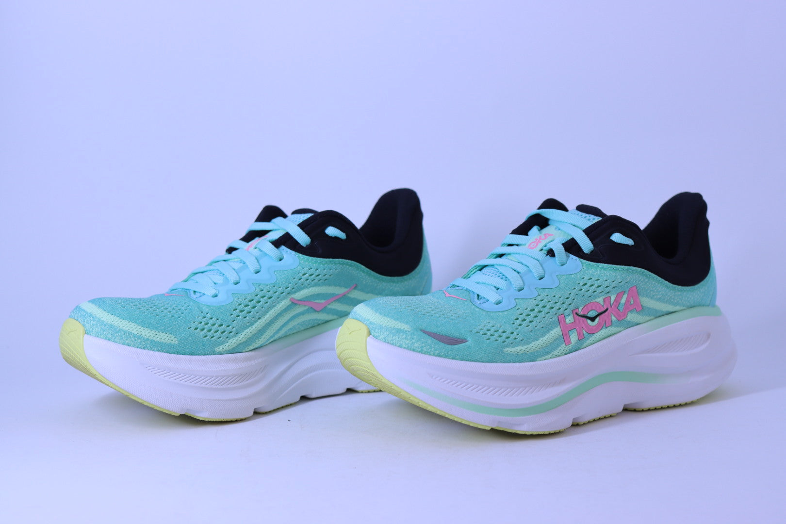HOKA Bondi 9 – Aqua / Pink / Mint