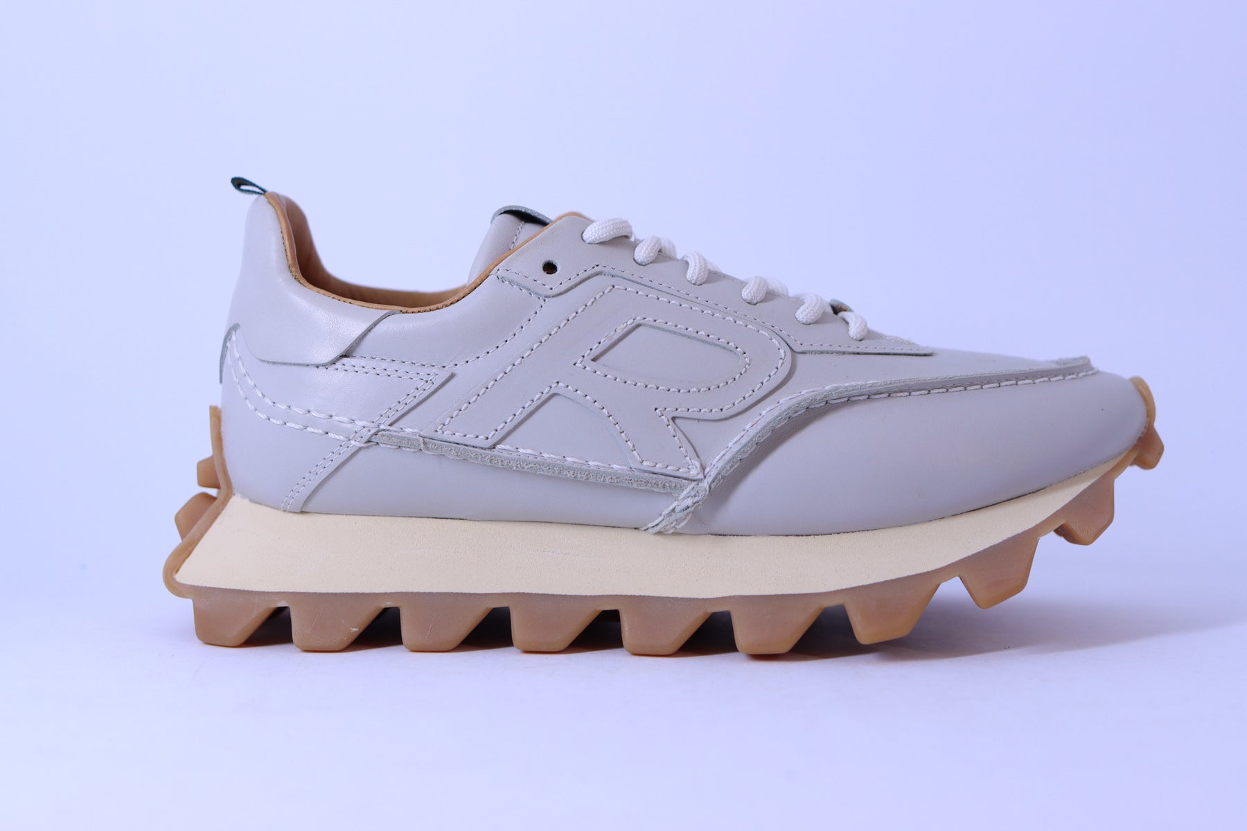 • Logo “R” lateral costurado em alto relevo